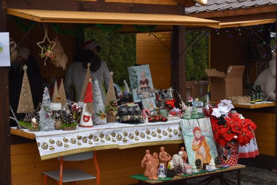 Na dziesięciu straganach można kupić m.in. ozdoby świąteczne w bardzo szerokim asortymencie, od choinek po najmniejsze świąteczne figurki , ciasta, sery i inne wiktuały, biżuterię, zabawki. Jest też stoisko gastronomiczne oferujące żurek z kiełbasą, barszcz czerwony z pasztecikiem, herbatę zimową, bigos, pajdę chleba ze smalcem. Dla dzieci jest darmowa, stylowa karuzela.