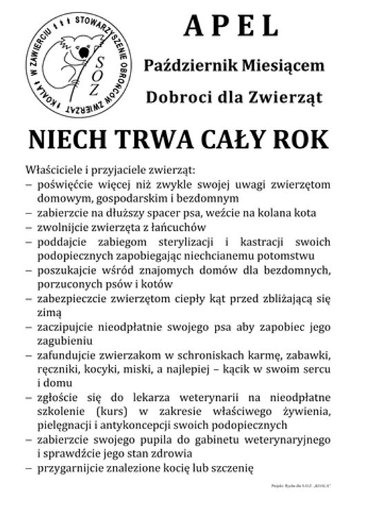 Październik Miesiącem Dobroci Dla Zwierząt