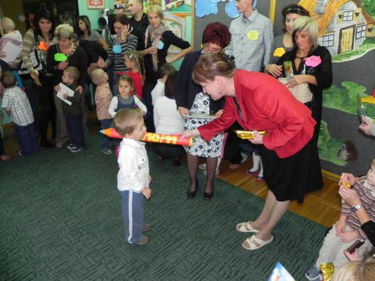 Pierwszy miesiąc w przedszkolu dla najmłodszej grupy trzylatków zawsze jest najtrudniejszy. Tęsknota za rodzicami, nowe otoczenie, nowi koledzy i koleżanki, to pierwszy poważny stres w życiu małego człowieka. 25 osobowa grupa z Przedszkola nr 3 podczas uroczystości z okazji pasowania na przedszkolaka zaskoczyła wszystkich przybyłych gości. Rodzice, dziadkowie i rodzeństwo byli zdumieni, jak wiele wychowawczyniom grupy: Bożenie Straszak i Agnieszce Wolańskiej udało się przekazać wiedzy ich pociechom w ciągu zaledwie miesiąca uczęszczania do placówki. Dzieci pięknie recytowały wierszyki, śpiewały piosenki, a także - wraz z opiekunami - (własnymi rączkami) przygotowywały jesienne obrazy. Po udanej zabawie Beata Sabuda, zgodnie z przedszkolnym zwyczajem, dużą kolorową kredką pasowała każde dziecko na przedszkolaka. W nagrodę za piękne występy dzieci otrzymały także pamiątkowe dyplomy i słodkie upominki. (JB)