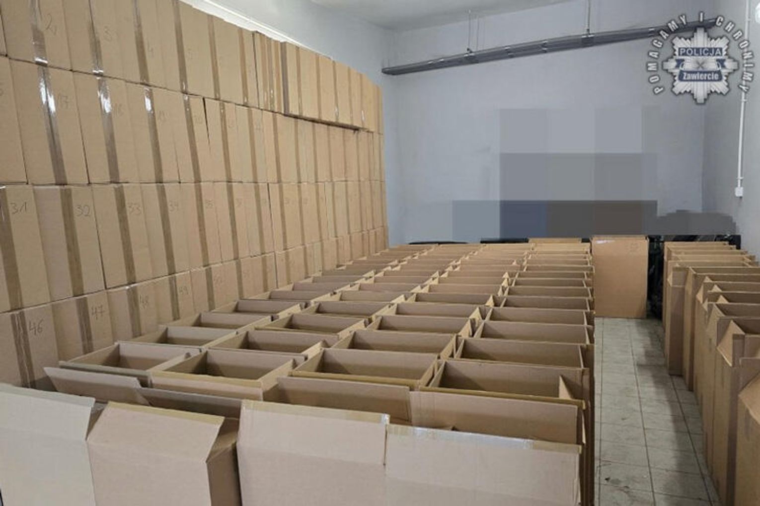 Policjanci sprawdzili też kolejną halę w innej części Zawiercia. Tam również znaleźli nielegalny towar. Łącznie zabezpieczyli prawie 7 milionów papierosów bez polskich oznaczeń akcyzowych. Wartość uszczuplenia, wynikającego z niezapłaconych podatków na szkodę Skarbu Państwa, została oszacowana na ponad 10 milionów złotych.