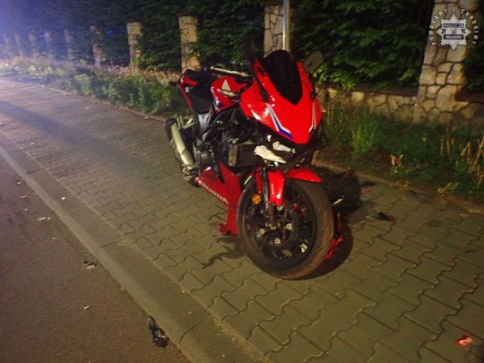 Ciężko ranny 19-letni motocyklista został przewieziony do szpitala. Ma bardzo poważne obrażenia wewnętrzne oraz liczne złamania.