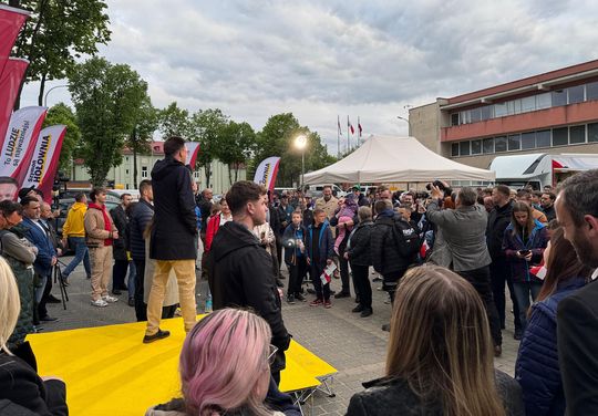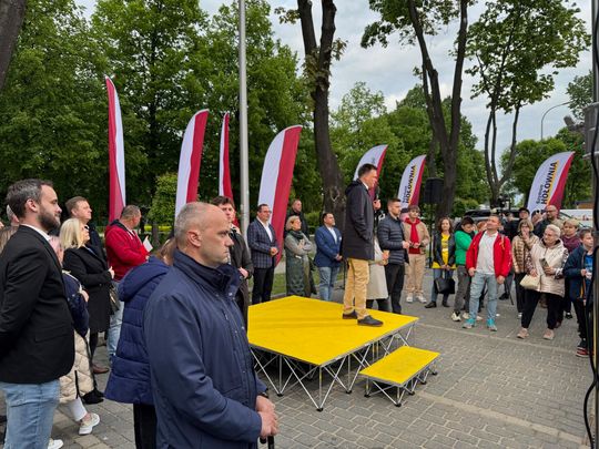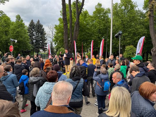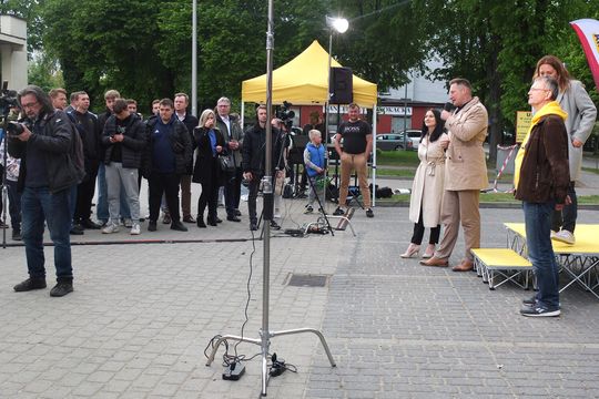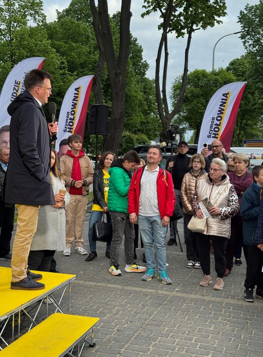 -Jest tu z nami poseł Kamil Wilk (ten wcześniej zagrzewał sympatyków Polski 2050 do aktywności), jest posłanka Izabela Ziętka, Wiceministra Edukacji Narodowej, posłowie Mirosław Suchoń i Piotr Strach (z Konopisk). Na parkingu foodtraki oklejone barwami wyborczymi Hołowni. Szkoda, że jego sztab wyborczy nie dał znać mediom, że spotkanie wyborcze będzie w konwencji pikniku z pierogami i kawą. Frekwencja była na spotkaniu dobra, na parkingu zebrało się jakieś 200 osób, ale może byłaby jeszcze lepsza?