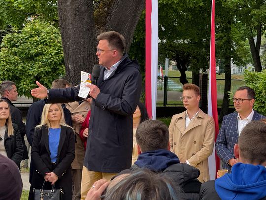 Nasz komentarz: Hołownia podkreślał dynamikę końcówki kampanii wyborczej, mówił, że „wszystko jest jeszcze możliwe”. I ma rację. Przetasowania liderów kampanii są możliwe. Inna rzecz, czy możliwe jest przeskoczenie z miejsca 4 jakie ciągle ma Hołownia w sondażach, na drugie? Pomysł na wybory, że to Szymon Hołownia rozbija duopol PiSu i Koalicji Obywatelskiej jest dobry, ale ma podstawową wadę: wyniki sondaży pokazują, że walczy raczej o miejsce trzecie, a nie drugie. Kpiny i podszczypywanie Mentzena, który wyraźnie stracił impet są dowcipne, ale trudno oczekiwać, że zmienią kolejność na podium. Choć jak widać o aferze z mieszkaniami Nawrockiego, rzeczywiście wszystko jest możliwe. Nie wiemy tylko czy finał 18 maja, kluczowa I tura wyborów da II miejsce Mentzenowi, czy właśnie Szymonowi Hołowni?