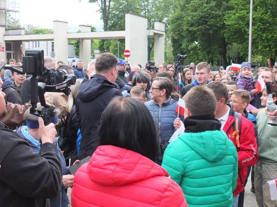 Już na długo przed godziną 18:00 6 maja na parkingu przy MOK sporo oczekujących na spotkanie z Szymonem Hołownią. Dyskretnie ale zauważalnie w pewnej odległości kilka patroli Policji. Hołownia choć jest na urlopie na czas kampanii wyborczej, to jako Marszałek Sejmu, formalnie druga osoba w państwie, podlega rygorom ochrony. Gdy pojawił się na parkingu, wokół niego ochrona. Natychmiast Szymon Hołownia wszedł w tłum, chętnie pozował do zdjęć, dawał autografy.