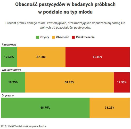 – Pamiętajmy, że ciało pszczoły działa jak naturalny filtr, który zatrzymuje metale ciężkie i wiele substancji toksycznych. Jeżeli mimo to znajdujemy takie substancje w miodzie, oznacza to, że stan środowiska musi już być alarmujący. Wśród wykrytych pestycydów są takie, które działają neurotoksycznie i szczególnie zagrażają dzieciom i ludzkim płodom. Wpływają na rozwój mózgu i układu nerwowego. To neonikotynoidy, działaniem zbliżone do nikotyny, a o jej szkodliwości nie trzeba już dzisiaj nikogo przekonywać. Badacze wskazali nam też inny problem. Te substancje wchodzą ze sobą w interakcje, tworząc jeszcze bardziej trujące koktajle chemiczne – komentuje Krzysztof Cibor, szef zespołu kampanii w Greenpeace.