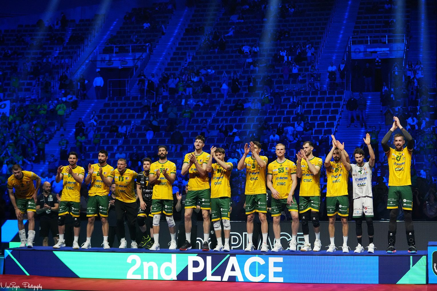 A w niedzielę 18 maja w finale zmierzyli się z włoską Sir Sicoma Monini Perugia, z którą przegrali po tie-breaku 3:2. Początek meczu finałowego był wyrównany. Jako pierwsi na dwupunktowe prowadzenie wyszli siatkarze z Włoch. Aluron miał problemy z grą w ofensywie, a Perugia lepie prezentowała się na siatce co dało im prowadzenie 8:4. W kolejnych akcjach zawiercianie zaczęli odrabiać straty, a po asie serwisowy Mateusza Bieńka było 10:9 dla Perugii. W kolejnych piłkach ponownie Sir Sicoma Monini Perugia odbudowała przewagę i prowadziła 15:12. W końcówce po kontrze Wassima Ben Tary prowadzili Włosi 22:19. Ostatni punkt dla rywali Aluronu zdobył Oleh Płotnicki i premierowa partia padła łupem włoskiej ekipy.