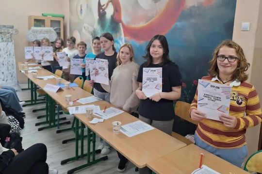 Ponadto w czasie przerw śródlekcyjnych uczniowie mieli możliwość wzięcia udziału w konkursie zorganizowanym przez nauczyciela bibliotekarza pt.,,Bogowie greccy”. Ich zadaniem było rozpoznać na ilustracji boga i dopasować do niej jego nazwę w języku angielskim. Za trafne odpowiedzi uczniowie otrzymali nagrody.