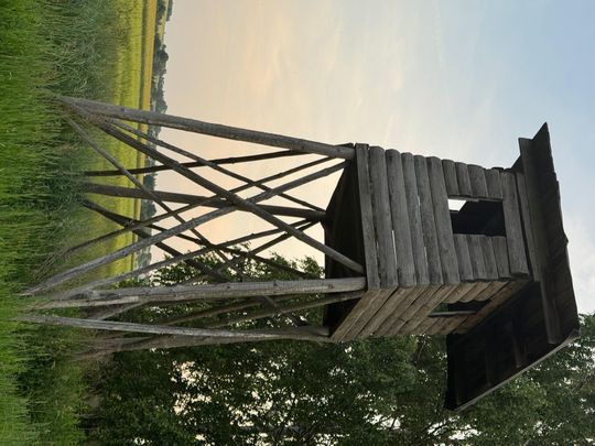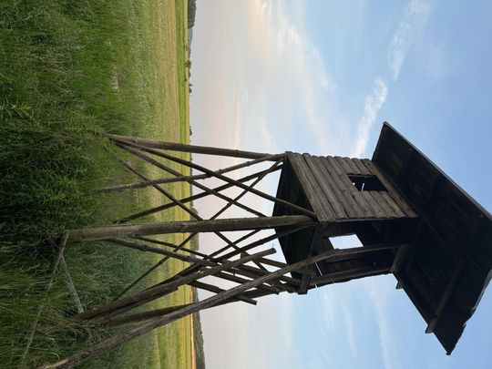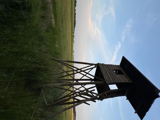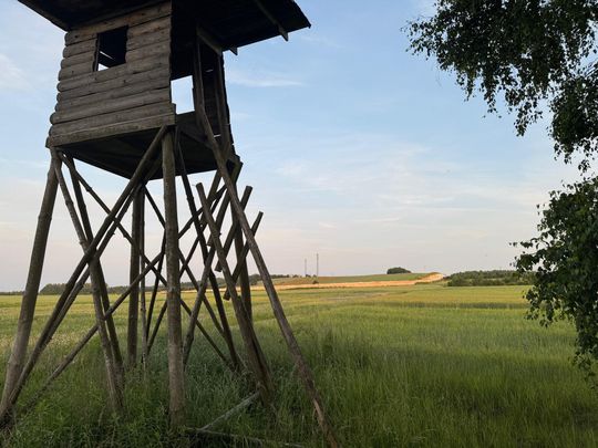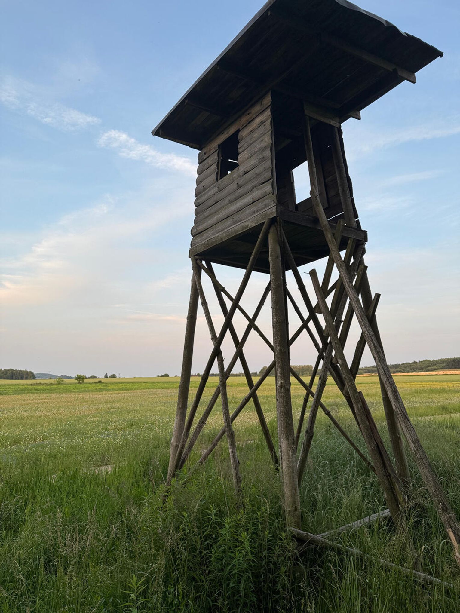 Oglądamy ambonę myśliwską, z której prawdopodobnie padł strzał. Teraz pomiędzy Przybyszowem, gdzie postrzelono kobietę, a amboną na skraju lasu od strony Kroczyc, trwa budowa obwodnicy Kroczyc i Pradeł. Ambona wyraźnie już przestała być używana, drabina się wali. Po ukończeniu obwodnicy na linii strzału będzie już nie tylko Przyłubsko, Przybyszów, ale również samochody jadące obwodnicą. Ciekawe, czy myśliwi będą tu dalej się zapuszczać? Jak Bóg da, może postrzelenie kobiety w dniu 17 października 2024 było jedyny i ostatnim w tej okolicy? A czy boskie wsparcie będzie ostatnią nadzieją na wykrycie sprawcy postrzelenia? Może warto wykupić taką intencję mszalną w najbliższym kościele? To chyba będzie Parafia pw. św. Jacka i Marii Magdaleny w Kroczycach. Już niedługo odpust w parafii, obchodzony aż 2 razy: 22 lipca w dniu patronki św. Marii Magdaleny, 17 sierpnia św. Jacka. Oprócz mszy będą kramy. A czy będą korkowce? Takie popularne pistoleciki?