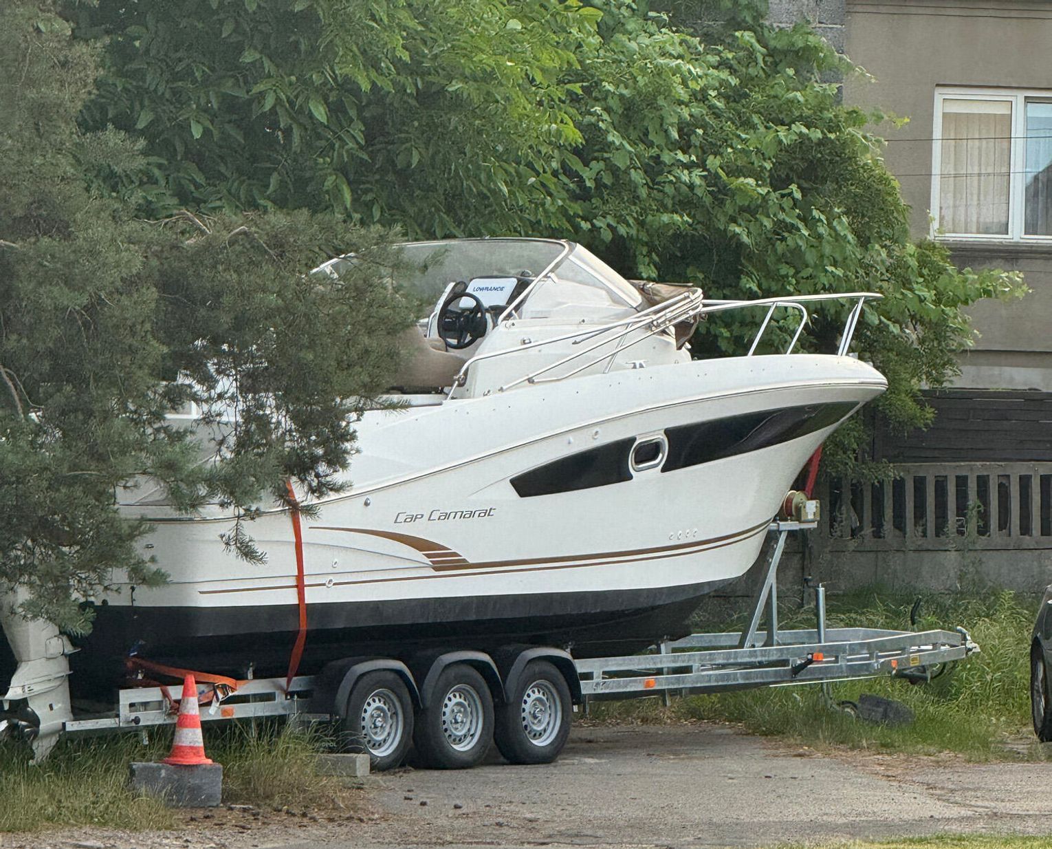 Łódź motorową Jeanneau Cap Camarat 8 można oglądać z tyłu KPP Myszków przy ulicy Kwiatkowskiego. Gapiów nie brakuje też wśród policjantów. Ciekawe, jak długo łódź będzie stała w „areszcie” policyjnym, zamiast cieszyć widok u wybrzeży Samos?