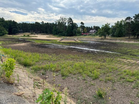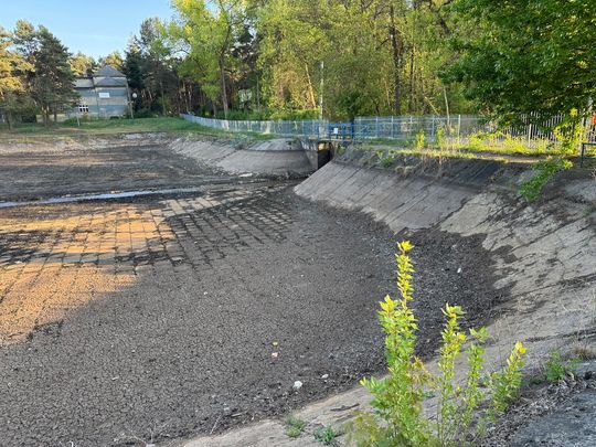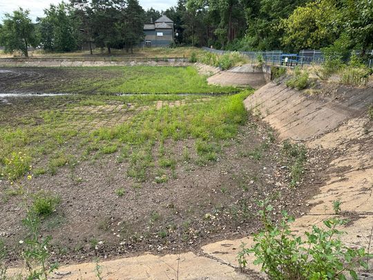 Czyli jak rozumiem, chodziło o wiosnę 2024. Mamy początek lata 2025 i basen wygląda smutniej, niż w chwili przejęcia: woda spuszczona, nawet teren wokół nie jest zadbany, zarasta.