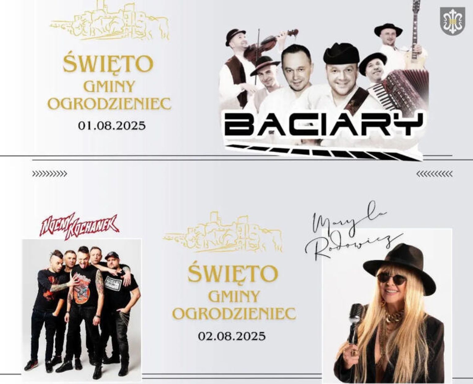 Obchody Święta Gminy rozpoczną się 1 sierpnia na terenie Ośrodka Rekreacyjno-Wypoczynkowego KRĘPA w Ogrodzieńcu. Od godziny 14:00 do 19:00 zagrają lokalne zespoły, a o 19:00 odbędzie się koncert zespołu Baciary.