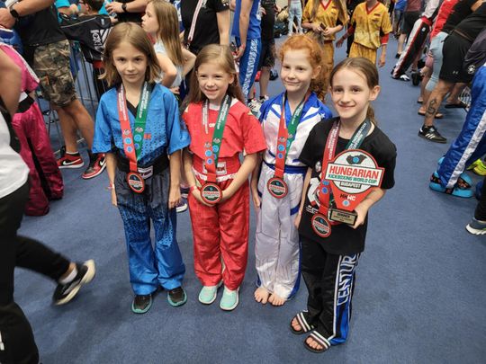 - Jeszcze nie opadły emocje po Lidze w Wieliczce, a już świętujemy i dzielimy się sukcesem Leny Korczyńskiej i Wiktorii Kreczmer – małych Wojowniczek o wielkim talencie i odwadze. Zawodniczki Kickboxing Małpka Zawiercie wystartowały w Pucharze Świata w Budapeszcie na Węgrzech. Prawie 4000 zawodników z całego świata, a wśród nich nasze niezwykłe Wojowniczki. W sporcie nie ma przypadku, są za to momenty dzięki którym możemy wykorzystać swoją szansę. Takie momenty z powodzeniem wykorzystały nasze Zawodniczki. Lena w pięknym stylu zdobyła srebrny medal w Pointfighting, a Wiktoria brązowy medal w Pointfighting. Oba medale błyszczą wyjątkowo. Stanowią przykład ogromnego talentu, siły i przebojowości. Gratuluję Dziewczyny! Moc jest z Wami! Jeżeli masz odwagę walczyć intensywnie i pielęgnujesz w sobie wewnętrzny spokój, to sukces jest zapewniony. Lena i Wiktoria kolejny raz zapisały się na zaszczytnym miejscu w sportowej historii naszego Klubu. Dla mnie – dla trenera i wychowawcy, jest to moment ogromnej dumy. Jestem szczęśliwy i niezwykle zmotywowany. Cieszę się, że Lena i Wiktoria przełamały stres i pokazały światu, kto jest najlepszy. W Pucharze wystartował też Hubert Marcisz. Do zdobycia upragnionego medalu zabrakło niewiele - gratulujemy odwagi i możliwości walki z najlepszymi zawodnikami świata. - powiedział trener Paweł Solarski. (tu), foto: profil na FB Kick Boxing Małpka Zawiercie