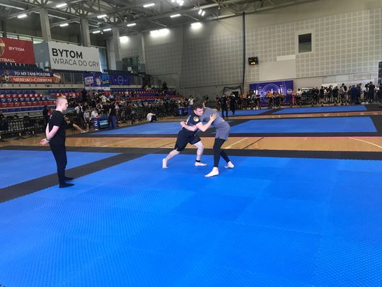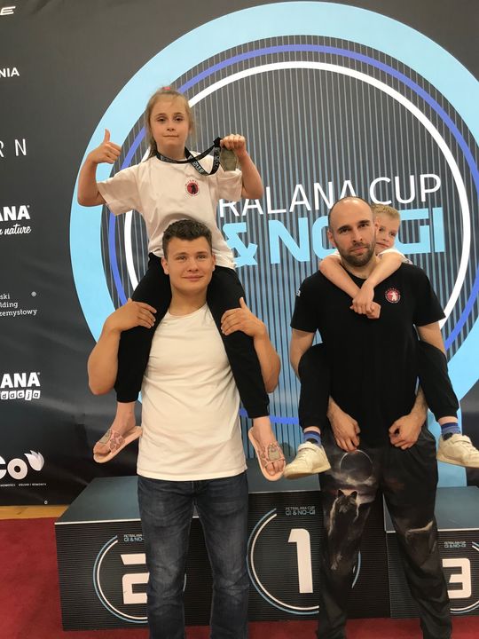 Zawodniczka Mushashi Żarki-Letnisko Lena Szlużewicz zdobywa złoty medal w Gi wygrywając swoje walki przed czasem przez poddanie dźwignią ude-garami. A Wojtek Trefuń również zalicza dobre walki i zdobywa złoto w kategorii No-Gi, a w kategorii Gi tym razem srebro. (tu), foto: profil na FB Mushashi Żarki-Letnisko