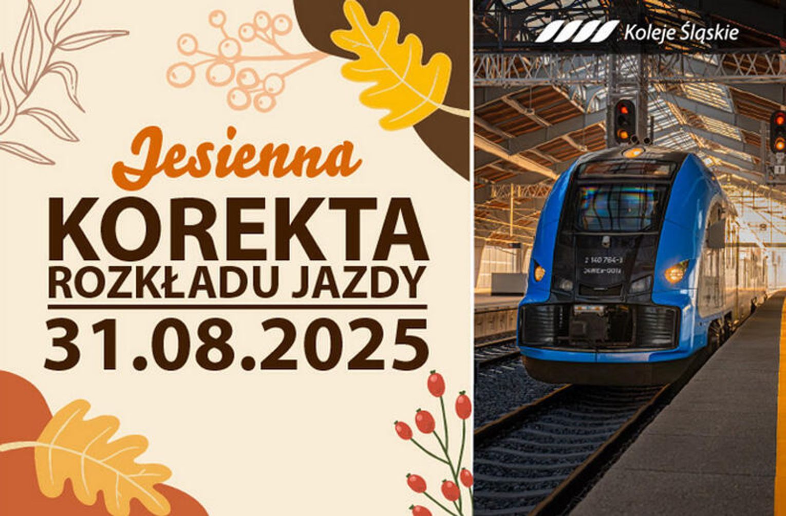 W jesiennym rozkładzie jazdy Kolei Śląskich zostaną utrzymane także uruchomione w czerwcu nowe linie na lotnisko: S14 Gliwice – Tarnowskie Góry – Pyrzowice Lotnisko oraz S19 Gliwice – Katowice – Pyrzowice Lotnisko. Na linii S14 będzie kursowało pięć par, a na linii S19 trzy pary pociągów w dni robocze i dwie w dni wolne. zd. Koleje Śląskie
