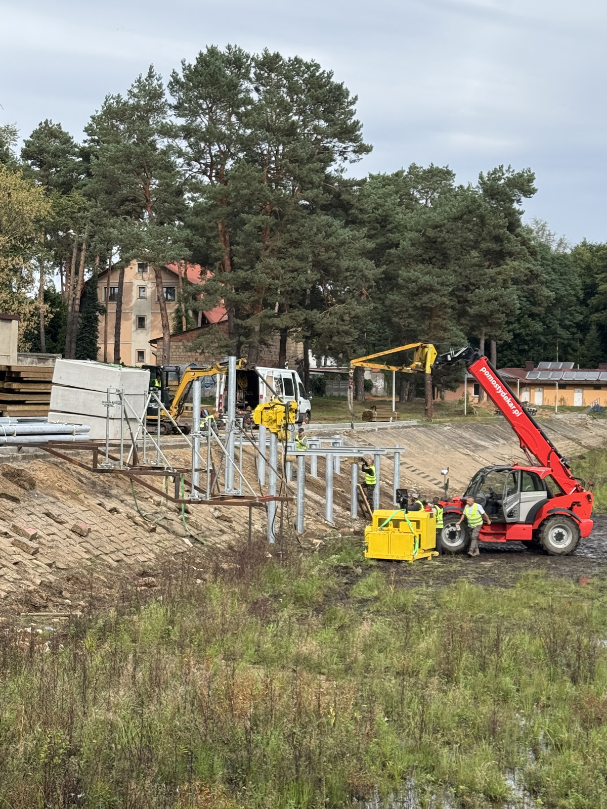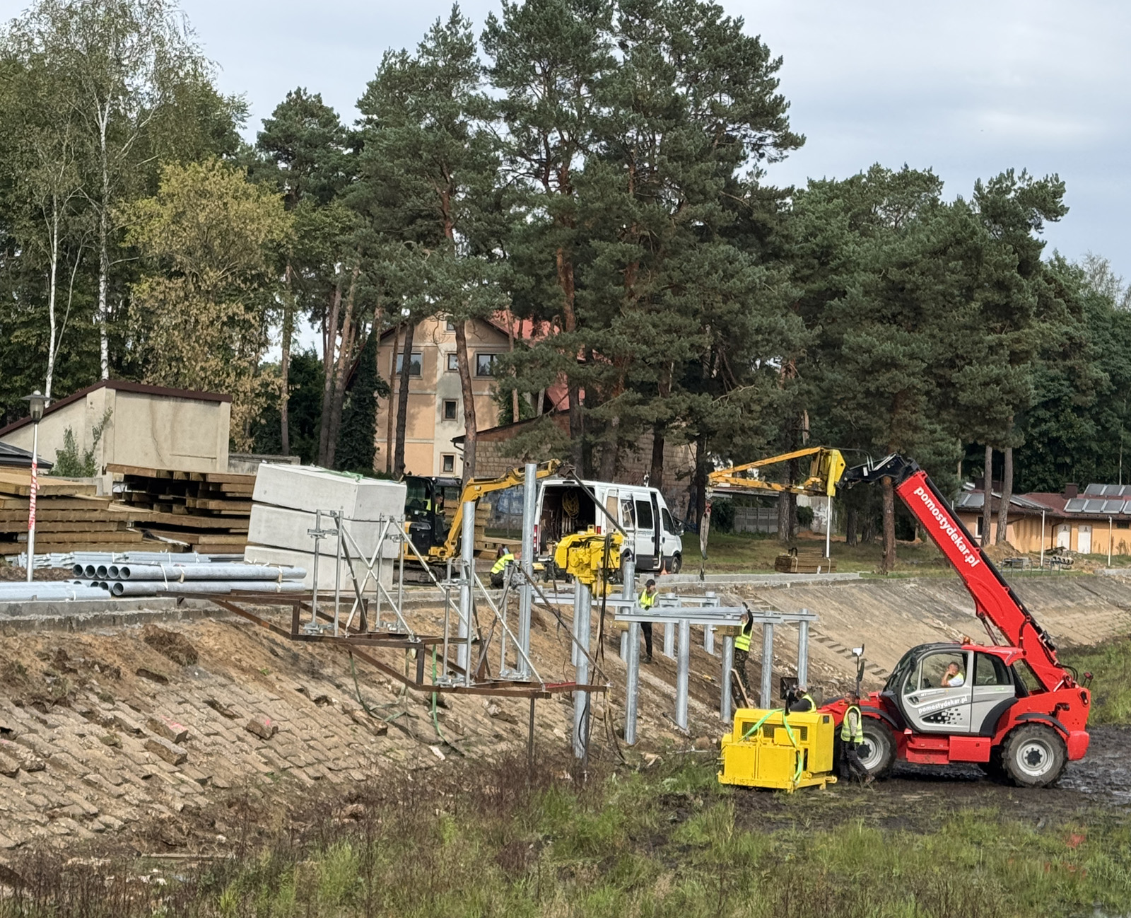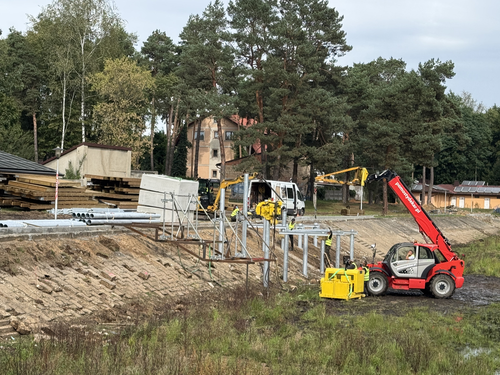 Zdjęcia zrobione 16 września. Coś się dzieje na budowie. Najpierw pojawił się piach, a teraz wykonawca, firma TOPATOTERA z Knurowa nawet coś buduje, chyba pomost. A więc oficjalnie ponad 1,5 roku od daty, którą Starosta Myszkowski Piotr Kołodziejczyk ogłosił jako termin zakończenia budowy (wiosna 2024) budowa otoczenia basenu (wrzesień 2025) RUSZYŁA! Zaznaczamy, że to nie budowa basenu, kąpieliska. Na remont czy modernizację niecki basenu kąpielowego w Żarkach Starostwo Powiatowe w Myszkowie nie ma pieniędzy.