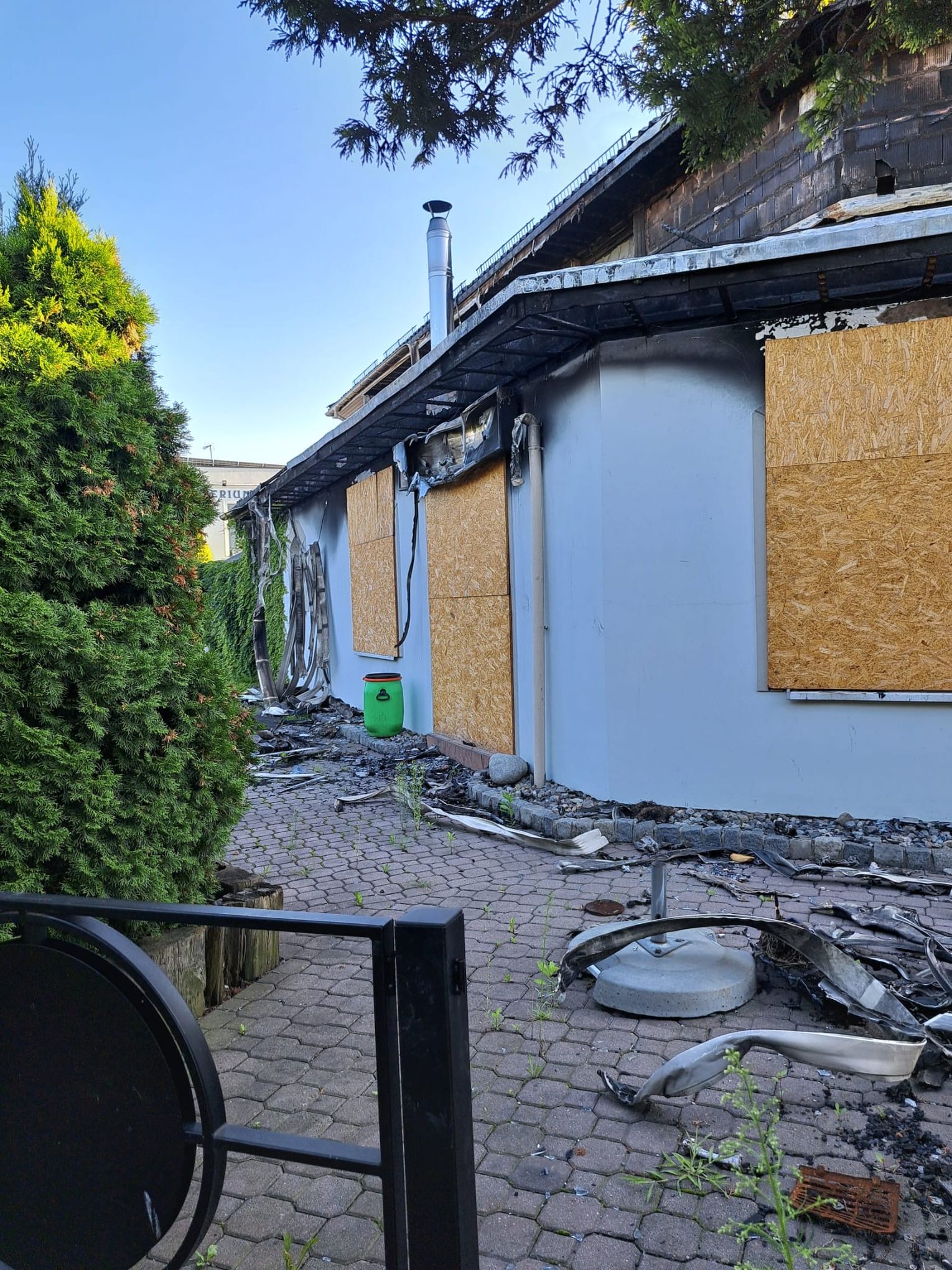 PP pisze, że straż pożarna sygnał o pożarze dostała 17 maja kilka minut po pierwszej w nocy. W akcji gaśniczej brało udział 11 zastępów straży, łącznie 33 strażaków. Pożar objął parter, piętro oraz część dachu budynku. Już wtedy rozpisywano się, że był to „ogromy pożar, który objął cały budynek”. Oglądamy zdjęcia, z jednej strony budynku trudno nawet dostrzec ślady po pożarze. Zniszczona jest całkowicie przybudówka, gdzie była kuchnia pizzerii Soprano.