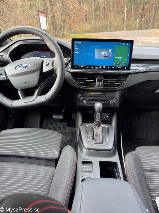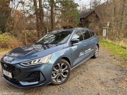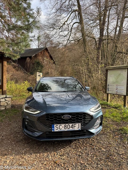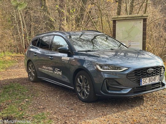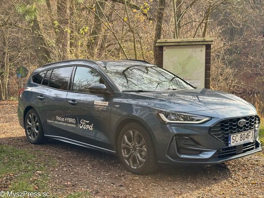 My z salonu Frank-Cars w Częstochowie na ul. Jagiellońskiej wyjeżdżamy Focusem w wersji combi z napędem hybrydowym. Jednocylindrowy silnik benzynowy i wspomagający silnik elektryczny dają razem 155 KM mocy. Wystarczająco, żeby jazda mogła być dynamiczna. Jedziemy właśnie w takim stylu, ale bez agresji. Jazda miejska, trochę trasy. Korki, ekspresówki i boczne drogi. Wszędzie Focus prowadzi się wzorowo. Widać też, że lata doskonalenia modelu dały mu bardzo dobre wyciszenie. W środku nowocześnie, w typowej stylistyce Forda, więc zwłaszcza miłośnik marki odnajdzie się tu bez problemu i bez wrażenia, że kupił samochód którego produkcja się kończy.
