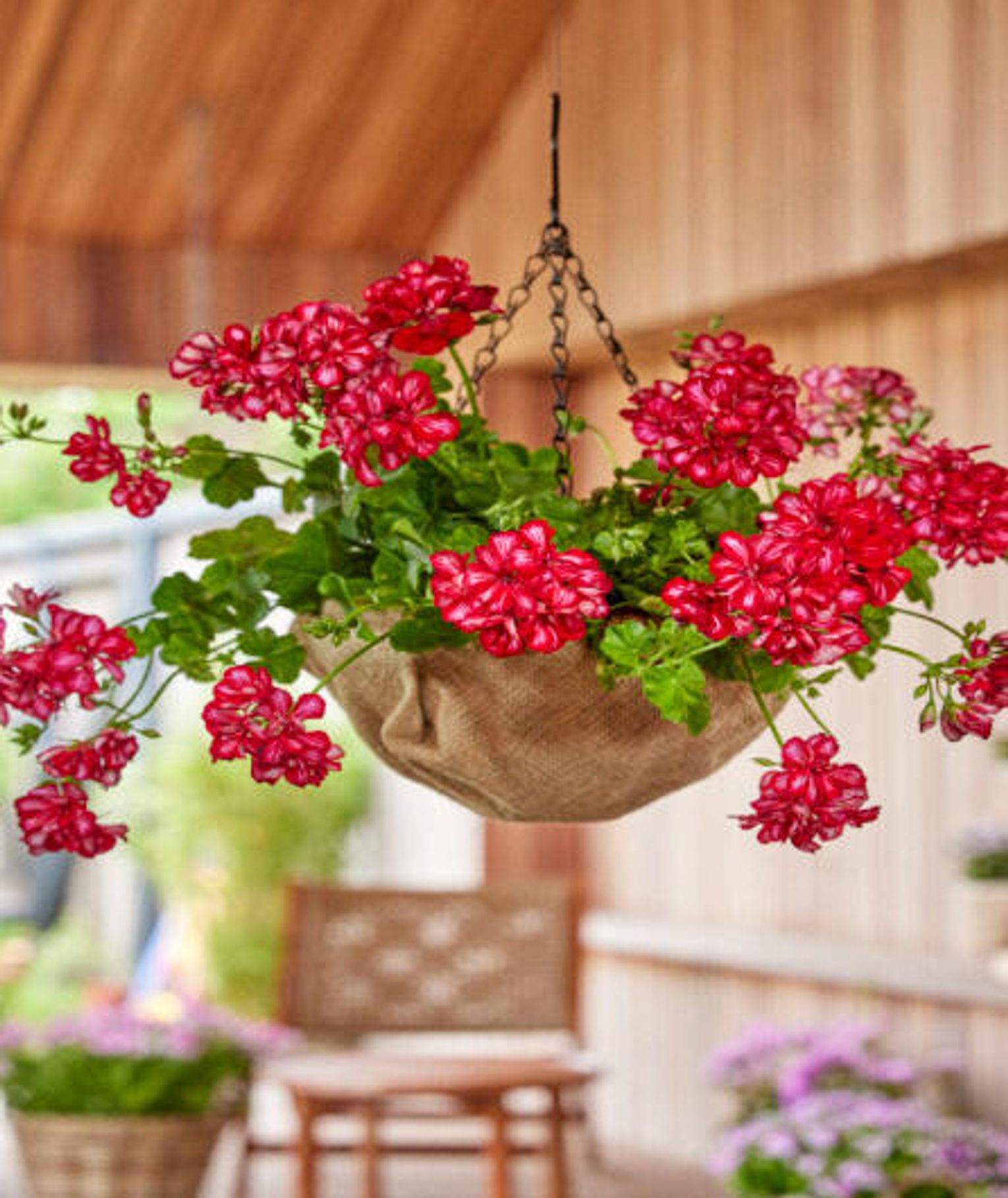 Nie każdy letni kwiat nadaje się do wiszącej donicy. Pelargonie są do tego stworzone! Są w stanie wytrzymać letnie upały, ulewy i kwitnąć od początku sezonu letniego do pierwszych przymrozków, bez konieczności ciągłego podlewania czy pielęgnacji. Podczas gdy inne rośliny kwitnące więdną w ekstremalnych warunkach pogodowych, pelargonie rosną bujnie, nawet w wiszących donicach, a ich żywe kwiaty opadają bujnymi kaskadami, zapewniając kolor i radość przez całe lato.