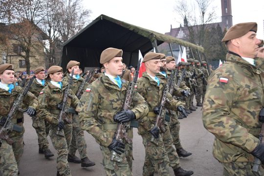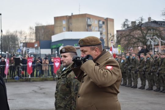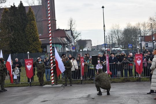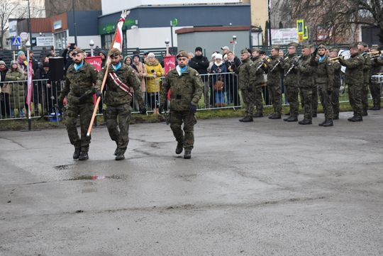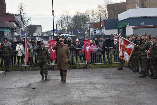 Na plac pododdziały wmaszerowały z towarzyszeniem orkiestry dętej 13 Śląskiej Brygady WOT. Uroczystość rozpoczęła się odegraniem i odśpiewaniem hymnu narodowego.