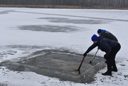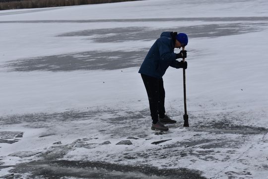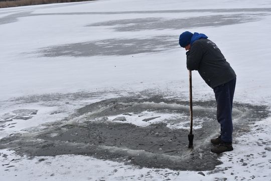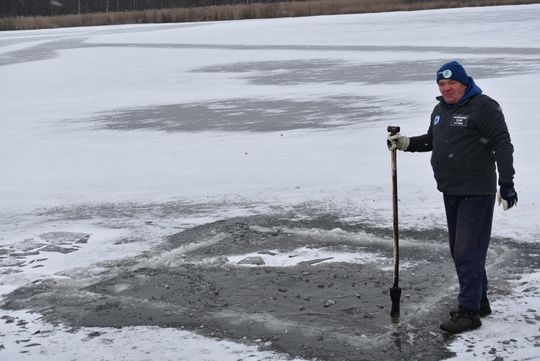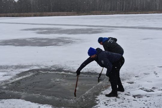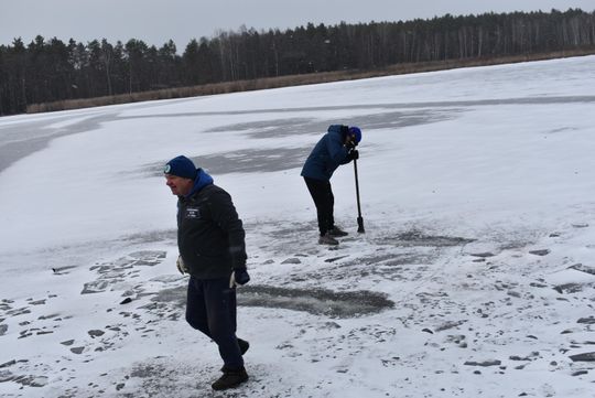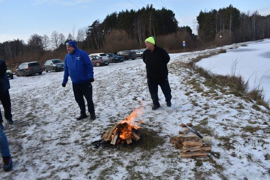 Było mroźno, wiał wiatr, potęgując odczucie zimna. Aby można było morsować trzeba było wyrąbać przerębel. A to nie było łatwe bo lód jest kilkucentymetrowy, ale zdecydowanie odradzamy wchodzenie na zamarznięty staw, bo jest to bardzo niebezpieczne.
