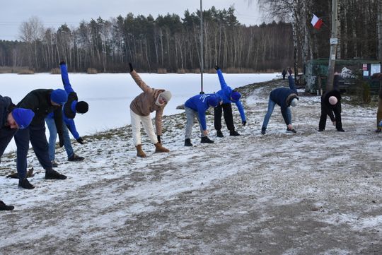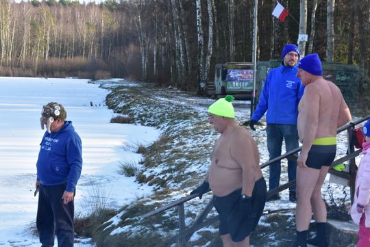 A na brzegu było ognisko, kiełbaski, gorąca herbata. Można było się ogrzać po wyjściu z wody.