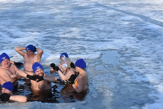 To było morsowanie "w pięknych okolicznościach przyrody" - błękitne niebo, południowe słońce, kilkustopniowy mróz, bezwietrznie.