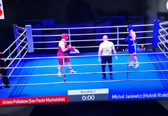 W sobotę 13 grudnia w walce finałowej zawodnik z Poraja zmierzył się z aktualnym Mistrzem Polski, Oskarem Szymańskim. Po wyrównanej walce sędziowie punktowali na korzyść bardziej doświadczonego rywala. Artem Poliakow, po zaciętej walce, sięgnął po srebrny medal. (tu), foto: profil na FB Klub San Paulo Masłońskie – Polonia Poraj