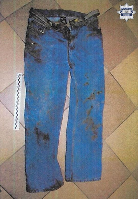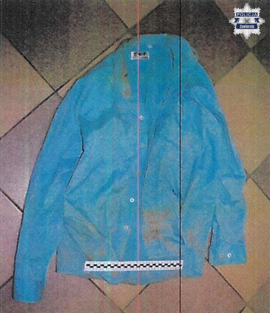Ubrany był w: ciemnoszarą kurtkę w jasną kratę, zapinaną na guziki, jasnoniebieskie jeansy, szary sweter, zieloną koszulkę, czarne, sznurowane buty.