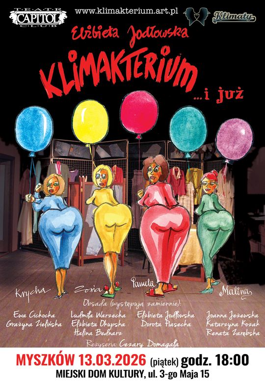 Odpowiedzi z podaniem nazwiska, numeru telefonu prosimy wysyłać na adres: [email protected] konieczne z hasłem "Klimakterium … i już!" w tytule maila. Ponieważ zwykle mamy bardzo wiele odpowiedzi w takich konkursach (nie zawsze poprawnych!) tym razem przyznamy bilety nie wg. kolejności, tylko drogą losowania " na chybił-trafił". Odpowiedź należy wysłać do 5 marca 2026 do 4 marca do godz. 14:00