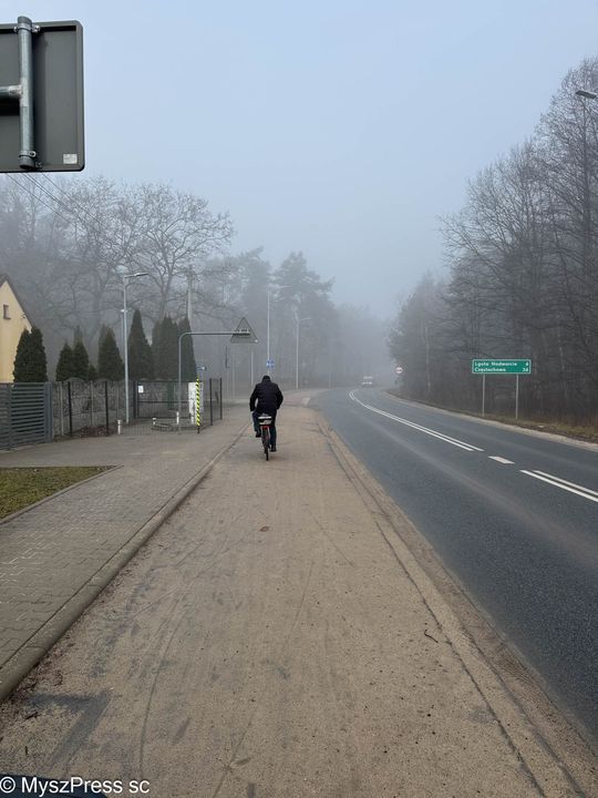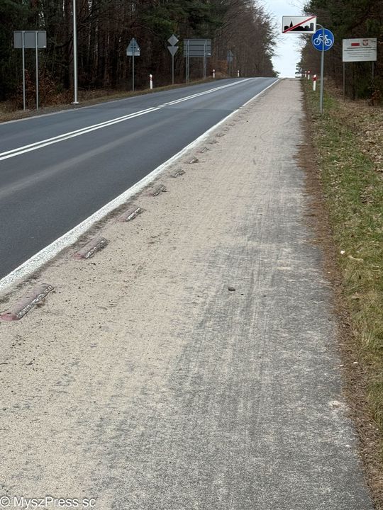 Ulica Wolności w Myszkowie, czyli droga powiatowa (powiat myszkowski, Starostwo Powiatowe w Myszkowie) Zarządca: PZD Myszków. Obraz nędzy i rozpaczy. Ciągi pisze, rowerowe i pieszo-rowerowe wzdłuż dróg wojewódzkich i powiatowych są tradycyjnie najbardziej zaniedbane. Niestety, co rok jest tak samo: służby drogowe powiatów, które zwykle mają też na zasadzie umów w utrzymaniu drogi wojewódzkie, są wiosną w najgorszym stanie.