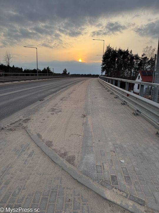 Wiadukt w ciągu Drogi Wojewódzkiej 789. Odcinek ścieżki rowerowej jest tu niewielki, ale ilość piachu taka, jakby wywrotkami przewieziono tu pół Pustyni Siedleckiej.