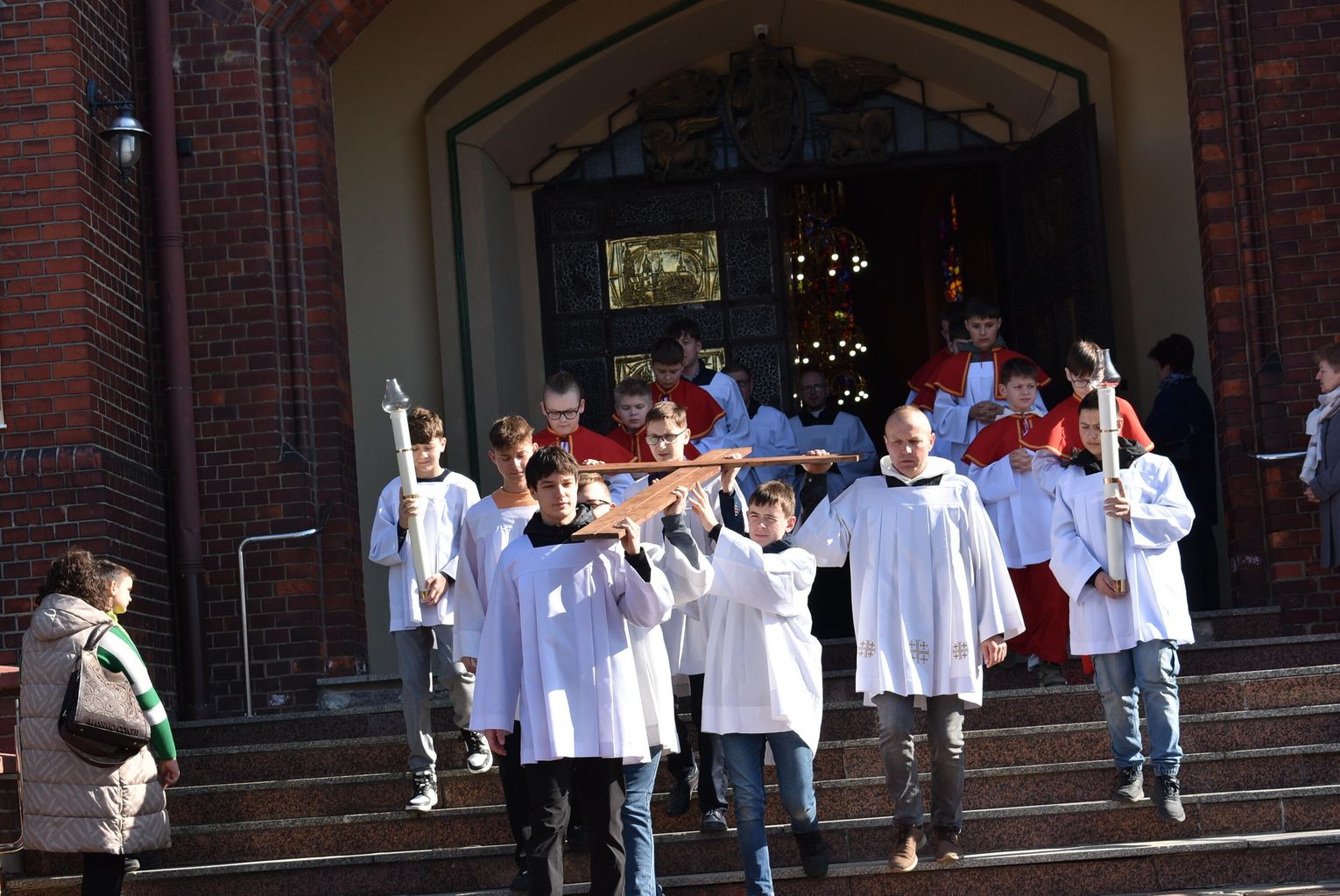 Przy poszczególnych stacjach Drogi Krzyżowej krzyż przekazywały sobie reprezentacje różnych środowisk w parafii, m.in. młodzież, dzieci komunijne, nauczyciele, pracownicy służby zdrowia, babcie, dziadkowie.