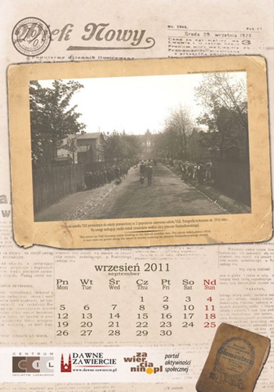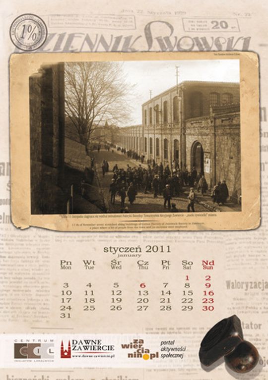 Tegoroczna edycja kalendarza opiera się na wykorzystaniu motywu związanego z prasą codzienną. Każdy miesiąc przedstawiony jest jako pierwsza strona dziennika ukazującego się w latach 20. XX w. Artykuły stanowią tu pewne tło – na pierwszym planie zostały wyeksponowane archiwalne zdjęcia Zawiercia. Tym razem nie są to jedynie widoki miejsc czy krajobrazów, ale życia mieszkańców Zawiercia uwiecznione na fotografiach. Podkreślają ten fakt także umiejscowione na każdej jego stronie przedmioty codziennego użytku. Kalendarz został wydany w edycji limitowanej - 500 egzemplarzy w cenie 15 zł. Można go nabyć w Centrum Inicjatyw Lokalnych – ul. Dojazd 6, Towarzystwie Miłośników Ziemi Zawierciańskiej – ul. Piastowska 1 (wejście do kawiarni), Jurajskiej Organizacji Turystycznej – ul. Piastowska 1 (wejście od ul. Leśnej) oraz sklepie z artykułami papierniczymi AMON – ul. Bohaterów Westerplatte 33. (JB)