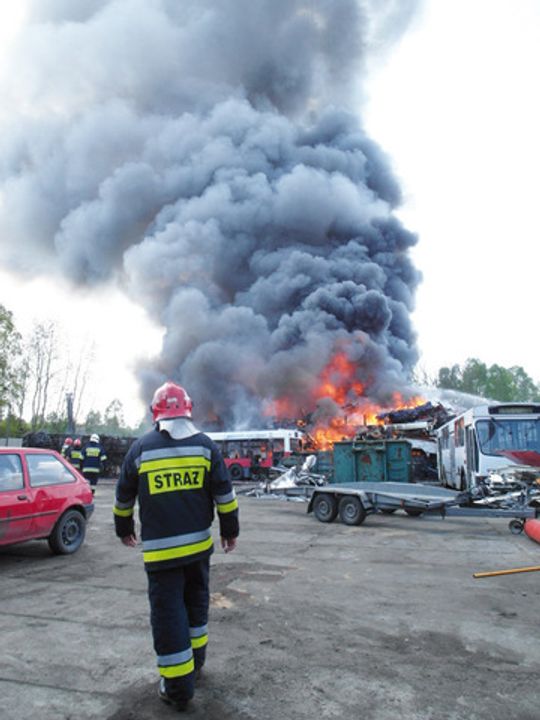 (Zawiercie) Blisko 5 godzin trwała akcja gaszenia pożaru, który 1 maja wybuchł na składowisku złomu na terenie dawnej Przędzalni „Przyjaźń” w Zawierciu. W akcji brało udział aż 30 jednostek straży zarówno państwowej jak i ochotniczej. Choć w wyniku pożaru na szczęście nikt nie ucierpiał, akcja nie należała do łatwych. Dodatkowe zagrożenie stanowiły liczne eksplozje zbiorników paliwowych znajdujących się we wrakach złomowanych pojazdów oraz brak sprawnych hydrantów na terenie całego obszaru dawnego zakładu przy ul. Obrońców Poczty Gdańskiej.